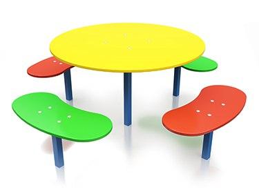 Яскравий столик «Дитинство» буде вдалим рішенням для встановлення на дитячому майданчику.